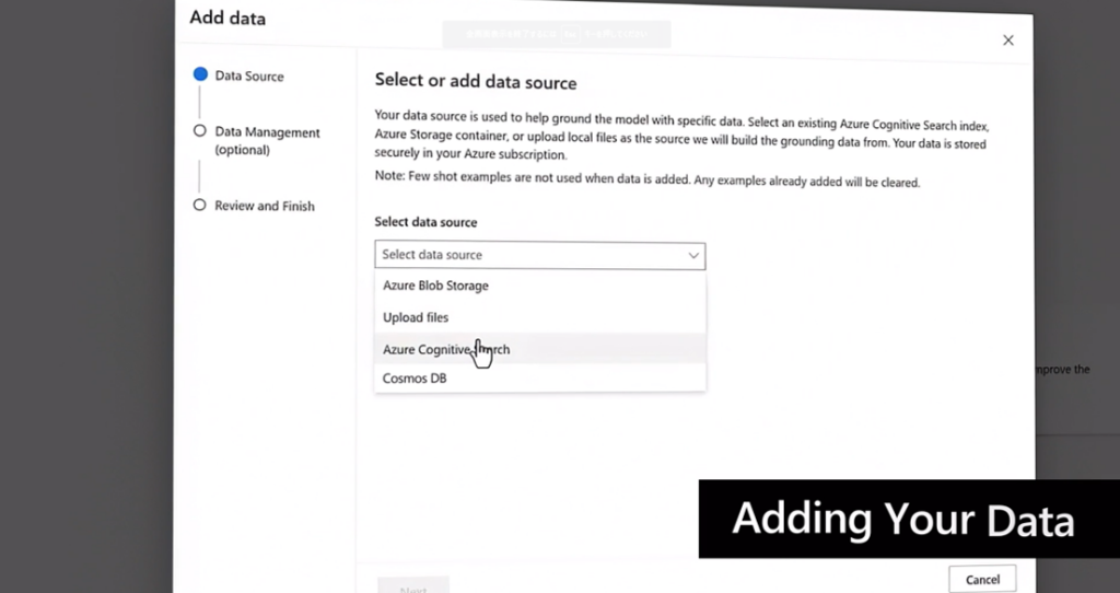開発者は数クリックで、構造化データ、非構造化データを取り込み、お客様向けにカスタマイズされたAIを簡単に構築できる