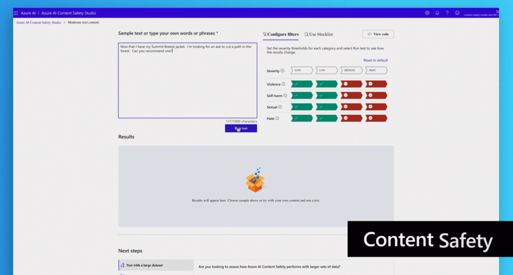Azure AI Content Safety で簡単に評価を行い、安全性をテストした上でデプロイが可能