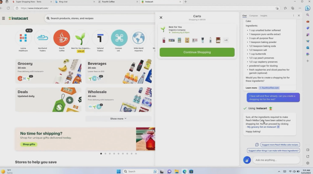 さらに、食材配達サービスのInstacartと連携し買い物かごに追加してくれる