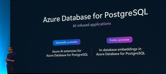 そして、Azure Database for PostgreSQLのデータベース埋め込みのパブリックプレビューが開始されました。この機能で、Microsoftオープンソースのテキスト埋め込みモデルが PostgreSQLに直接取り込まれるので、待機時間が短縮されるだけでなく、非常に高いスループットが得られます。