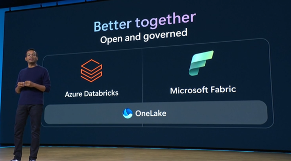 OneLakeの強みを活用した最も戦略的なパートナーシップの1つがDatabricksです。DatabricksとFabricは、どちらもオープンレイクハウスアーキテクチャに基づいているため、相互運用性に優れています。