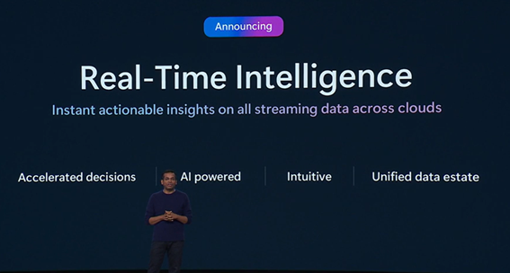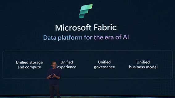 昨年のBuildでFabricのパブリックプレビューを発表し、昨年11月に一般提供を開始しました。Fabricは生データからAIやBIの価値をビジネスユーザーに提供するために必要なすべてのものを単一の統合SaaSプラットフォームで提供します。現在、Fabricは11,000人以上の有料顧客がいます。
