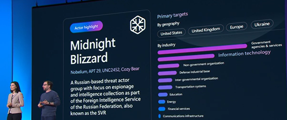 脅威アクターのターゲットは主に政府機関や防衛請負業者ですが、2番目に多いのは情報技術業界です。Midnight Blizzardは、システムがどのように接続され、どのように移動するかをグラフ化して、協力なコマンドを示します。