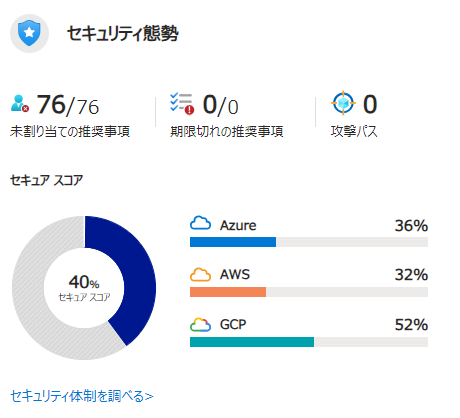 Azure、AWS、GCPの環境を横断的かつ継続的に評価を行い、単一のダッシュボードで管理できます。