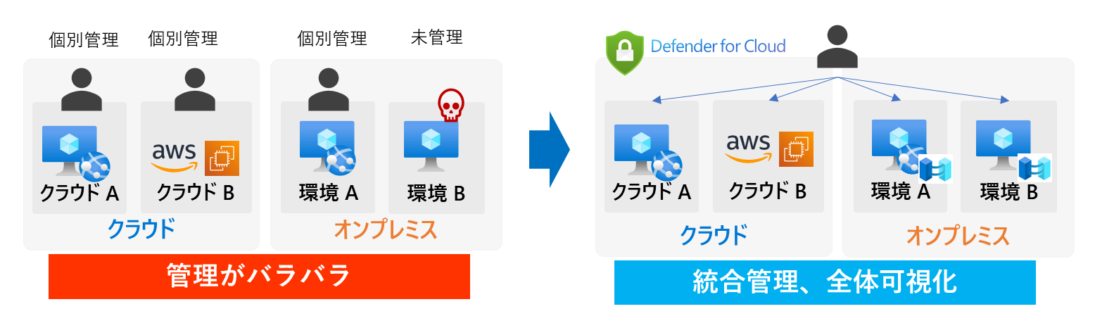 Defender for Cloud を利用することで、よくあるマルチクラウド時代のサーバーセキュリティ課題を解決することができます。