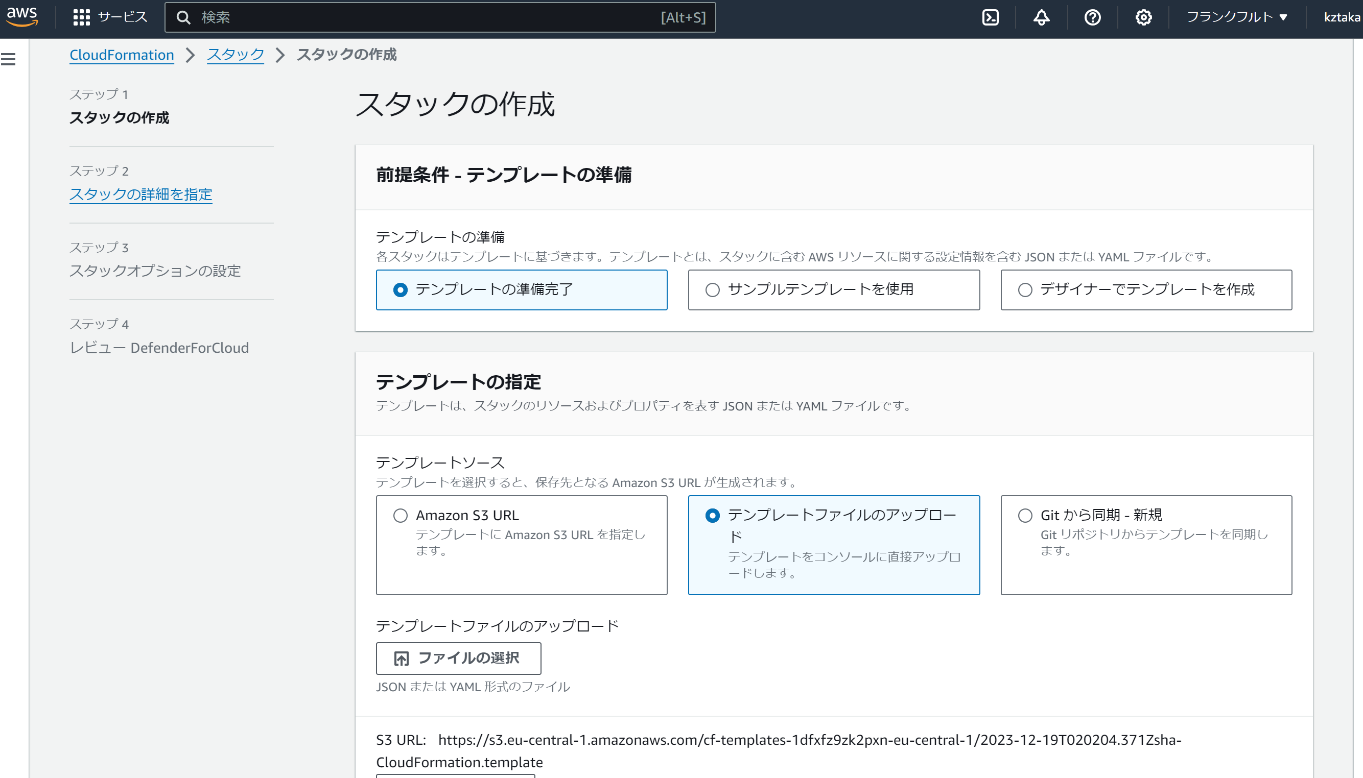 その後、デプロイテンプレートをダウンロードし、「AWS CloudFormation スタック」をクリックします。