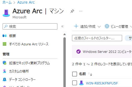 オンボードが正常に完了すると、Azure Arc 上に表示されます。
