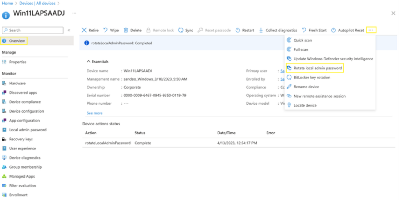 これにより、Intune画面からパスワードをリセット、更新することができます。
