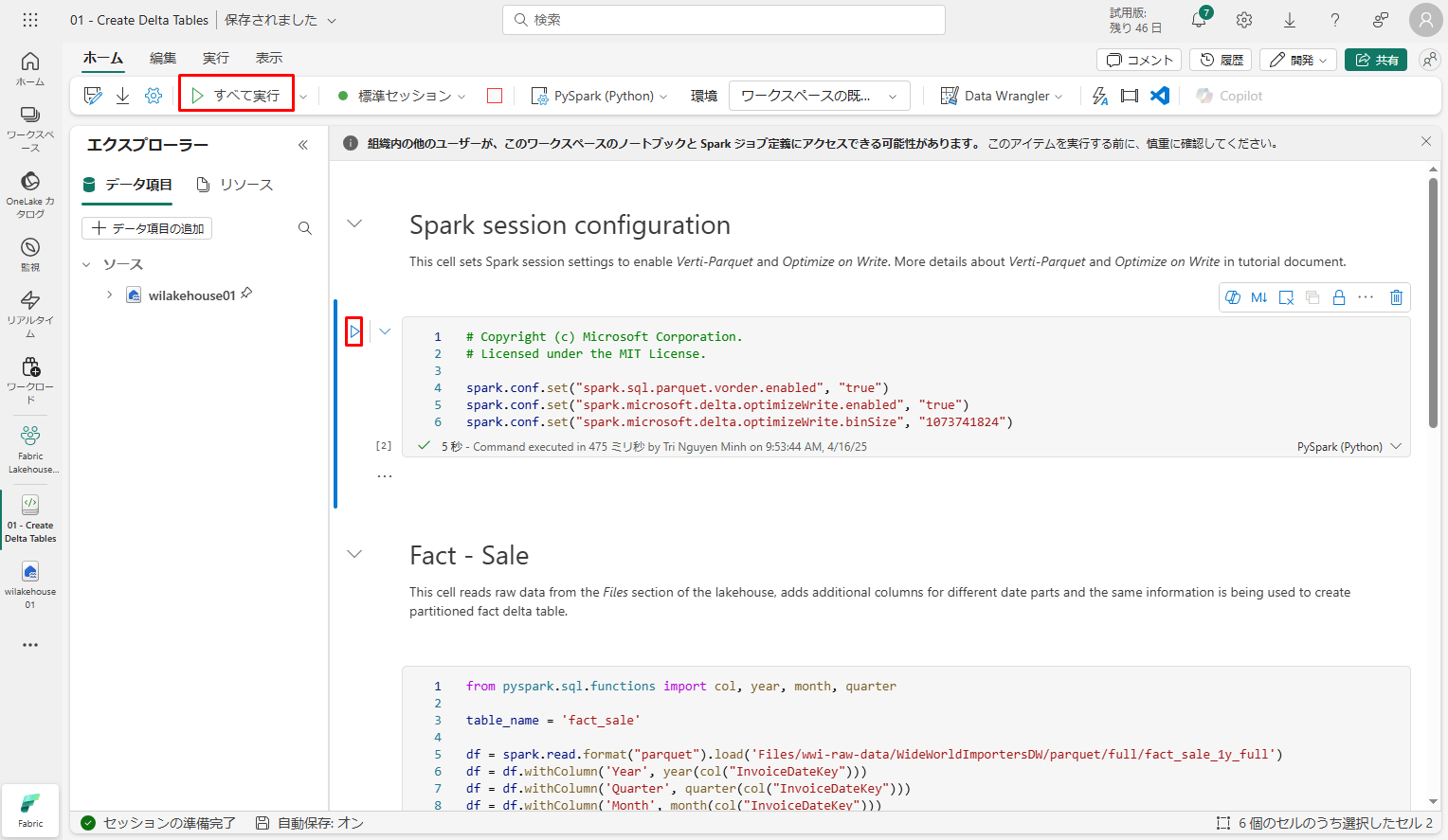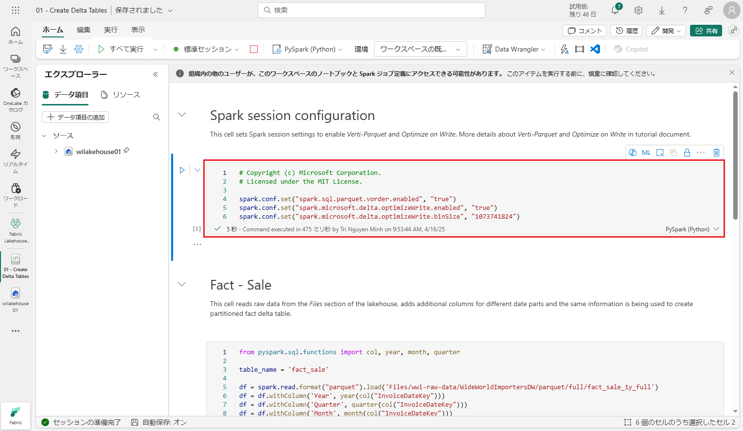 第5回:Synapse Data Engineering ユーザー向け Fabric チュートリアル_第2回 (今回)​