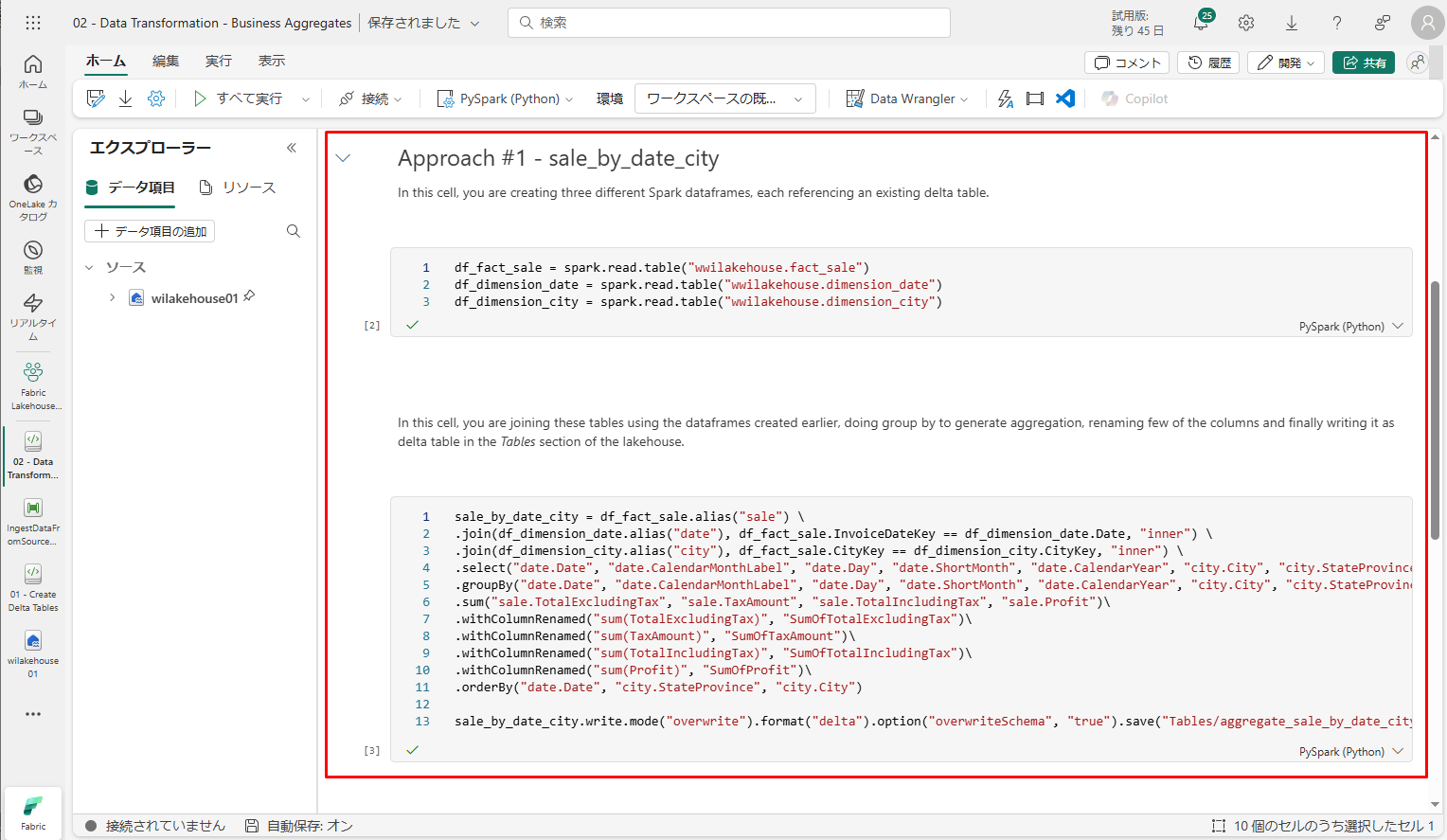 • レイクハウス「エクスプローラー」で開いているノートブックで、ノートブックが開いているレイクハウスに既にリンクされています。