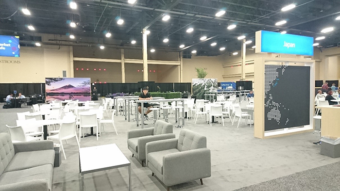 展示会場内には、ミーティングスペースが多く設けられているので、出展企業とのミーティングはとても実施しやすい環境でした。なお、各国ごとにテーブルスペースがあり、こちらでミーティングの実施は可能。本イベントに参加していないベンダー様とイーティングする機会があったのですが、受付に相談すると快く入れてくれました。このあたりはとても柔軟です。