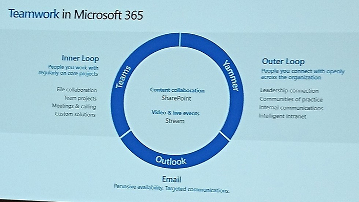 また、モダンワークについても、Yammer、Teamsのカラーの違い(広い範囲に向けた情報発信はYammer、プロジェクト単位などの範囲ではTeams)などを交えつつ、5月に実施されたBuildと同様のデモを実施。
