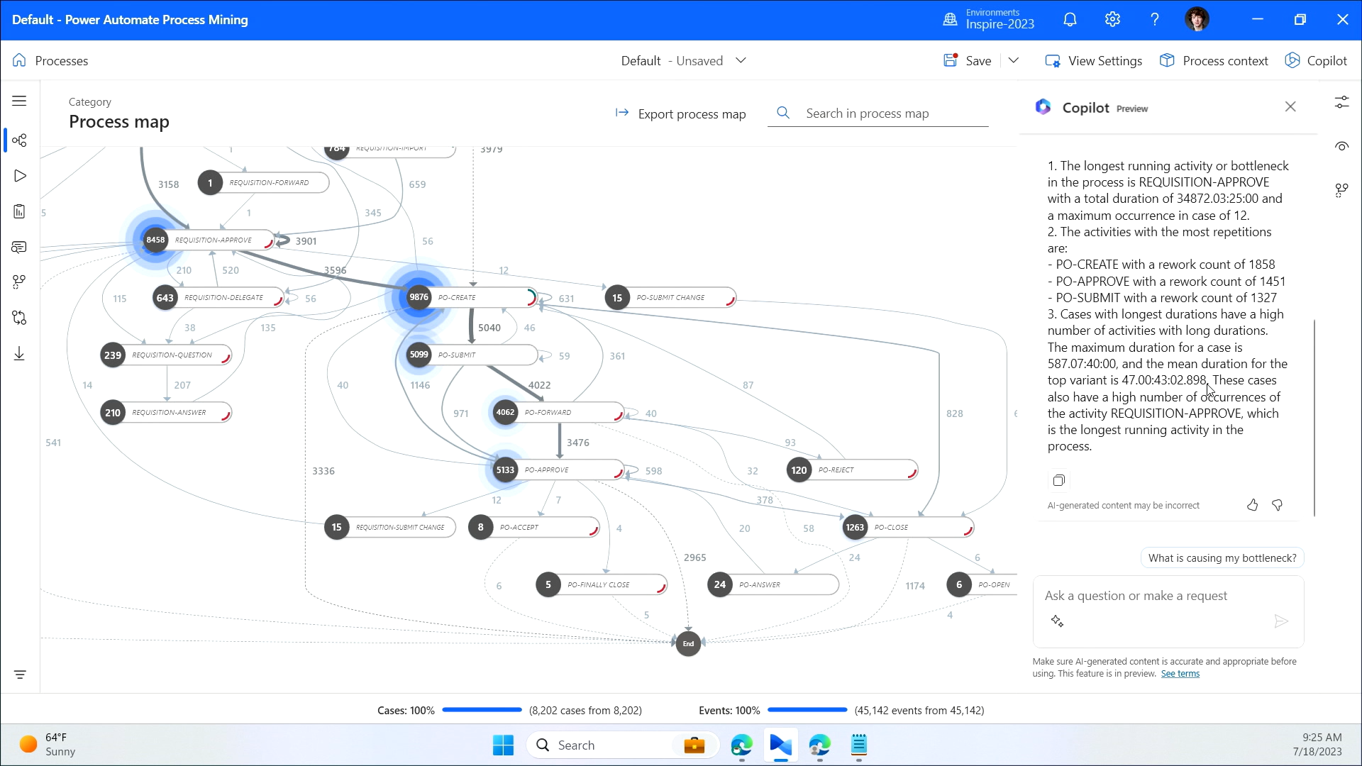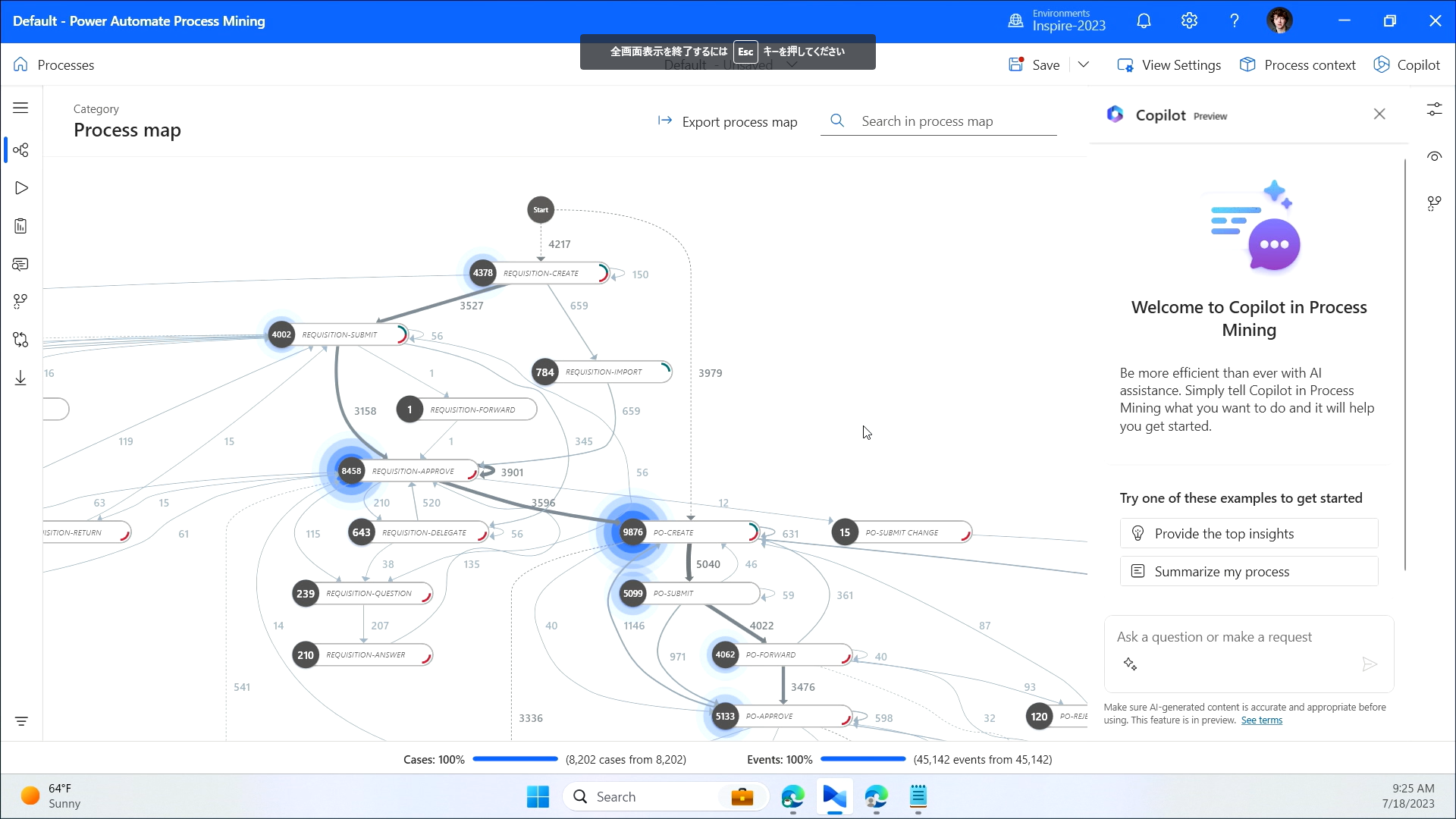 このProcess Mining は業務プロセスを分析して、ユーザーに改善提案してくれる機能です。