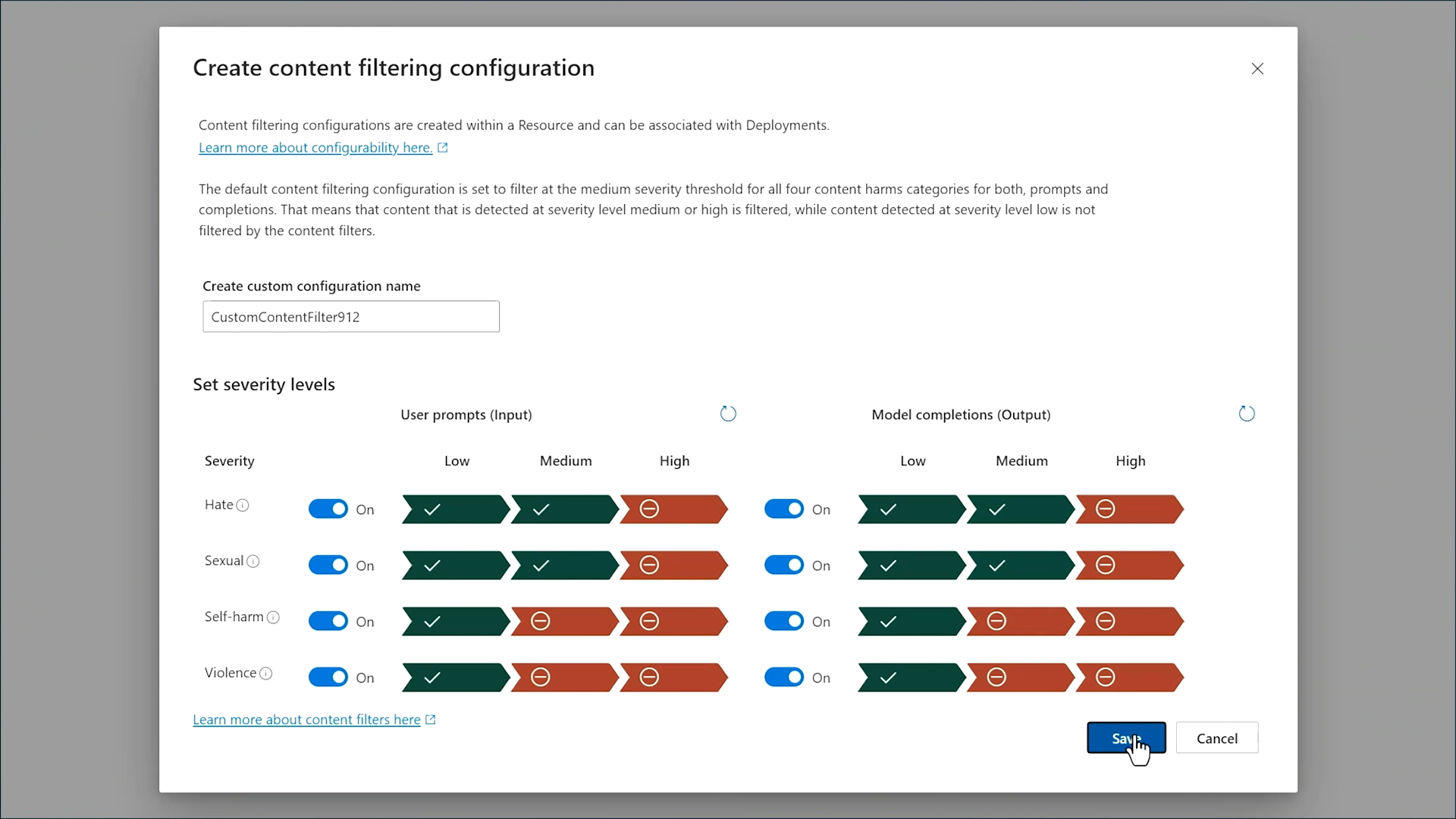 またAzure AI Studio にはAIのベストプラクティスに沿ったContent Safety機能があるので、