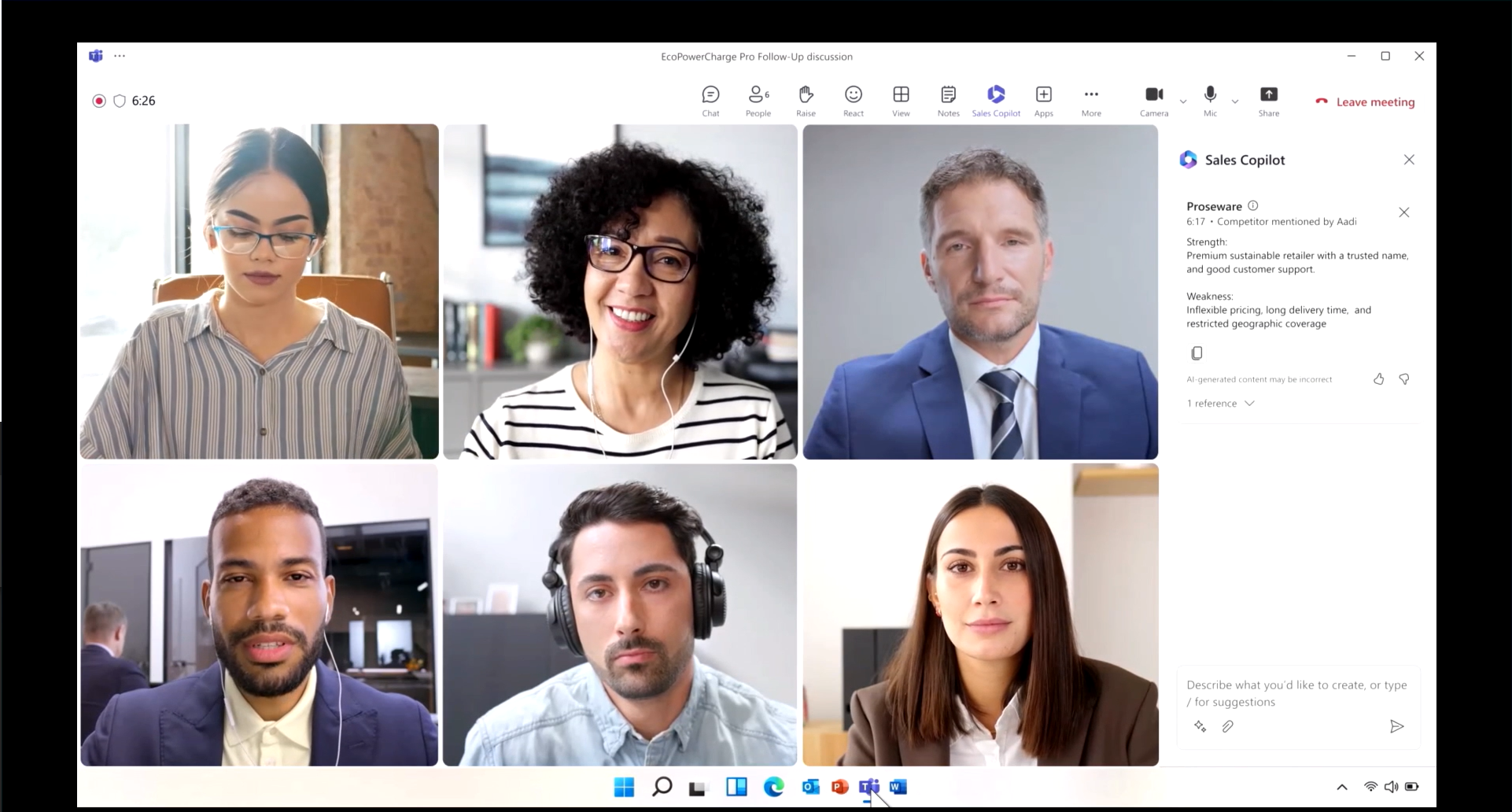 Teamsでミーティングすれば、リアルタイムに商談のヒントをくれます。