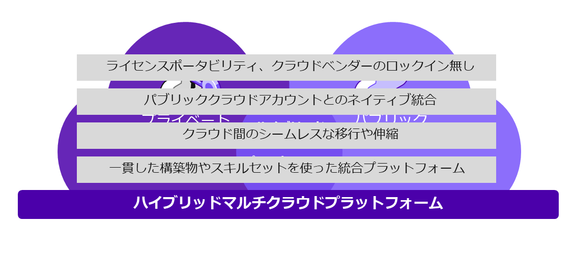 さらに、ハイブリッド・マルチクラウドでは、縦割りのインフラに存在する別々の管理ツールを使って、オンプレミスとパブリッククラウドの両方のリソースを管理する必要があります。