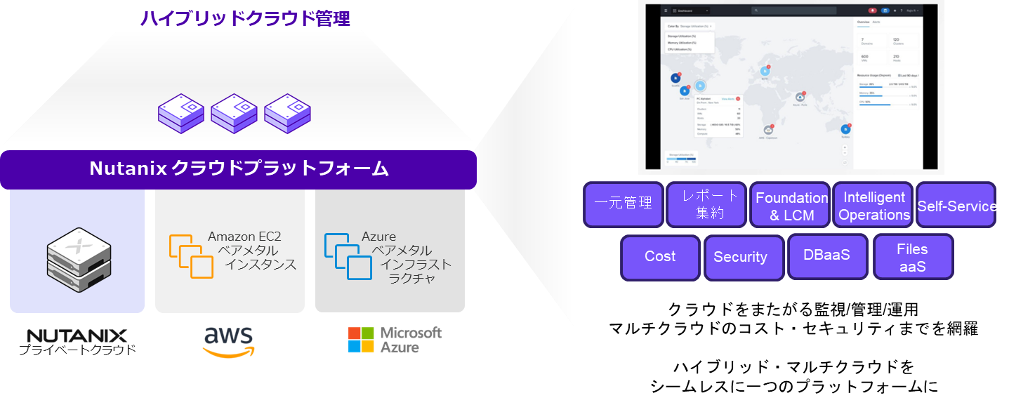 これにより、オンプレミスのNutanixからクラウドにまたがって監視/管理/運用の統合管理が可能となります。