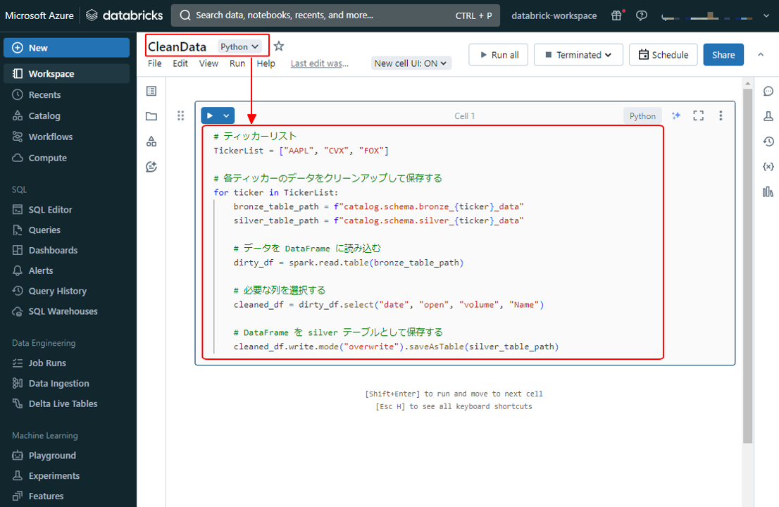注意: 「Clean Data」ノートブックへのパスを選択することが必要です。