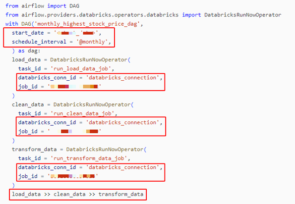 Python ファイルを作成して、3つのタスクを含む DAG を初期化し、各タスクがジョブをトリガーするようにします。