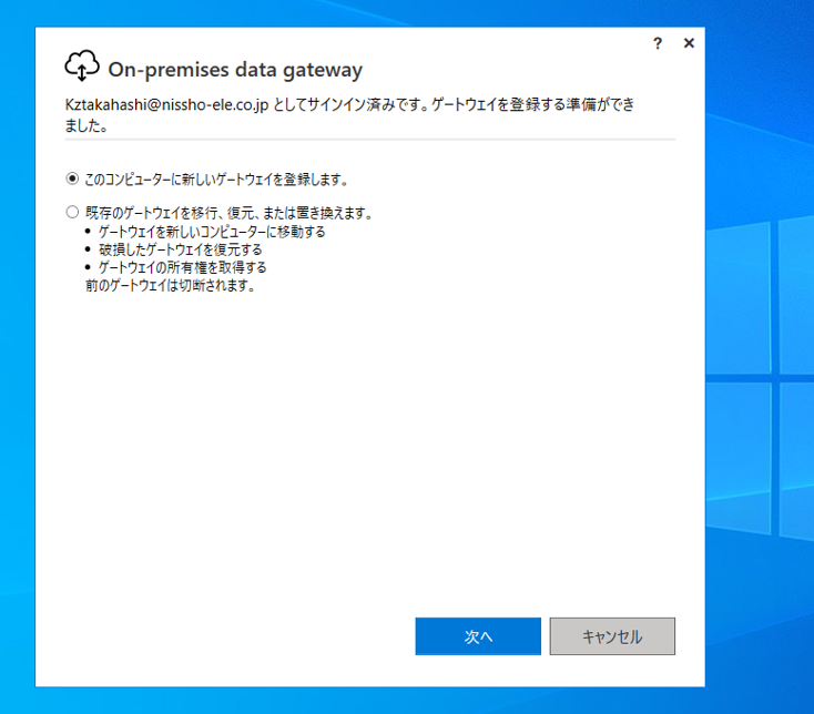 「このコンピューターに新しゲートウェイを登録します」を選択して「次へ」をクリックします。