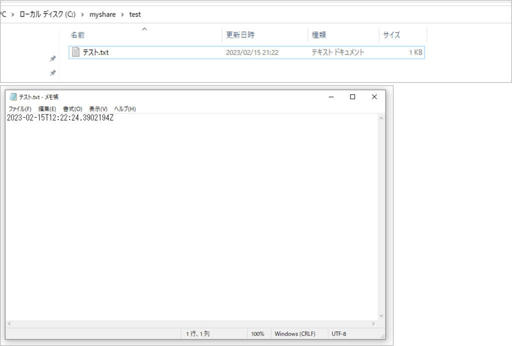 実行後、対象のフォルダにファイルができていることが確認できます。