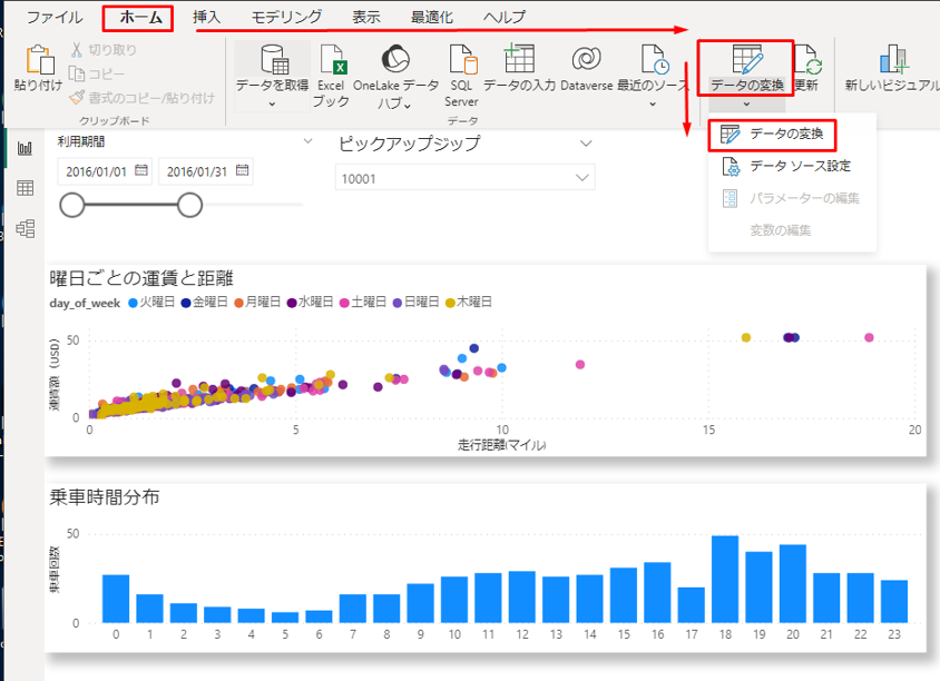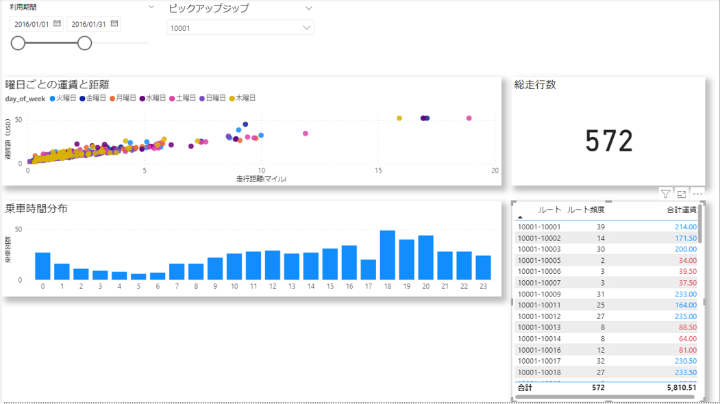 第2回:【Power BI Desktop ダッシュボード】曜日ごとの運賃と距離の可視化の作成
