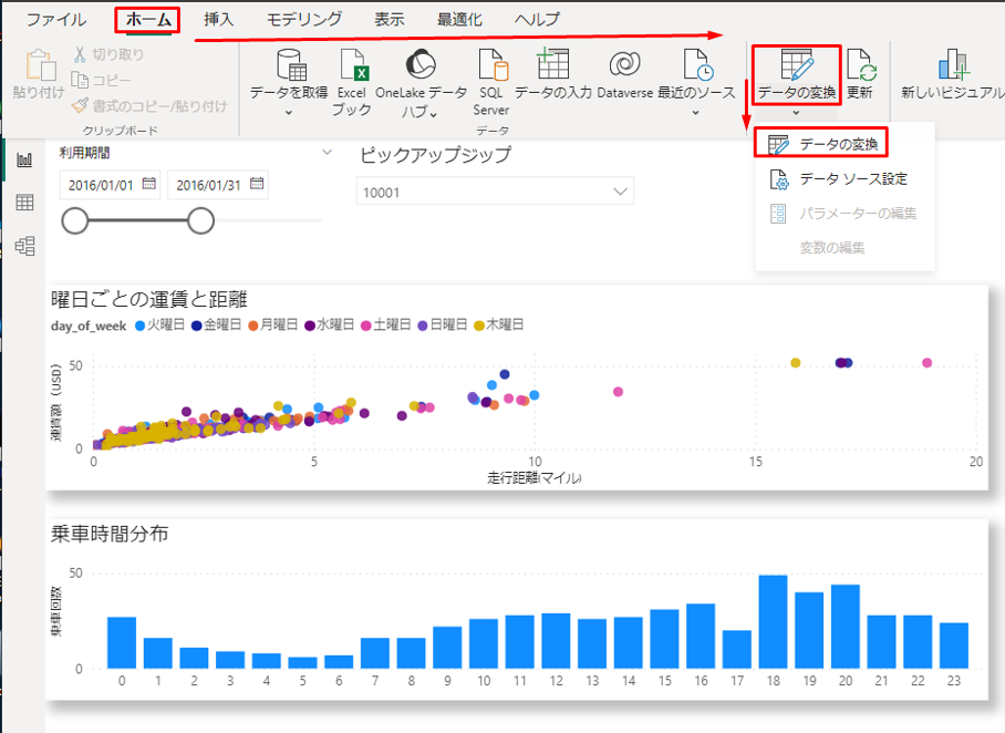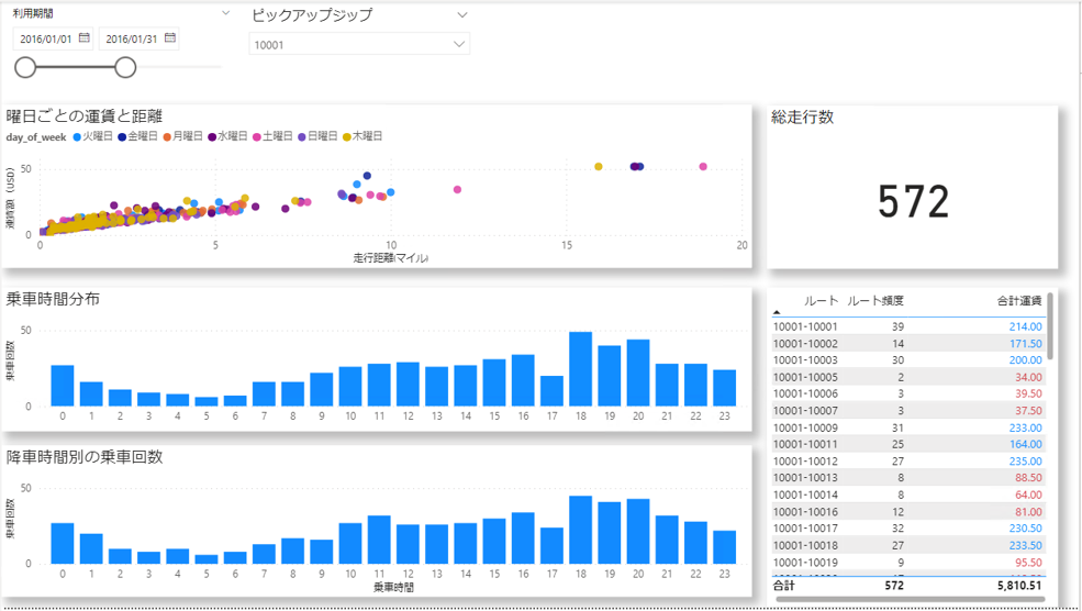 第2回:【Power BI Desktop ダッシュボード】曜日ごとの運賃と距離の可視化の作成