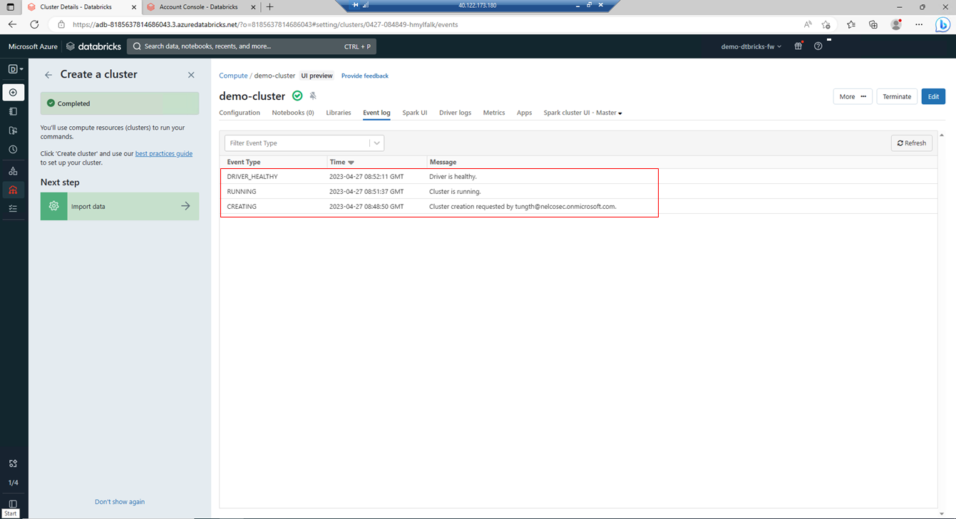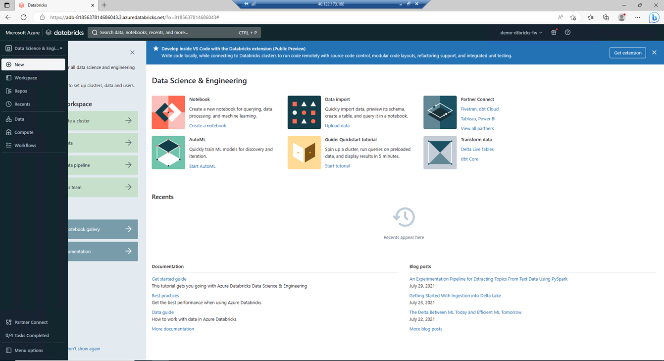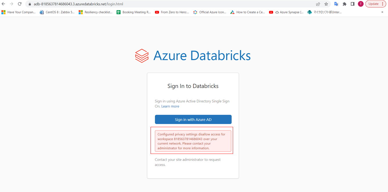 Client PCからDatabricksワークスペースへのアクセスできることが確認できます。