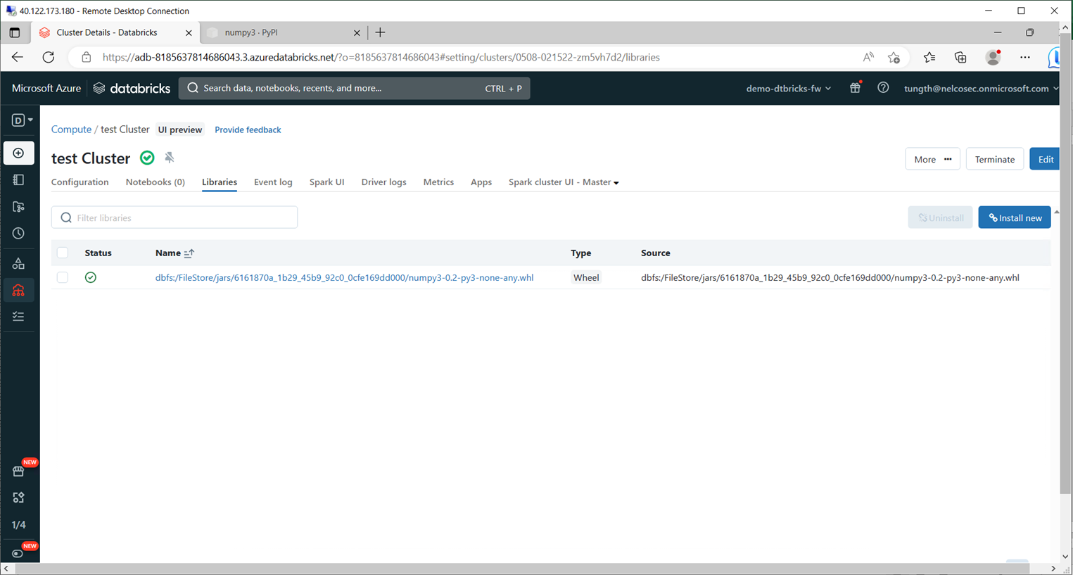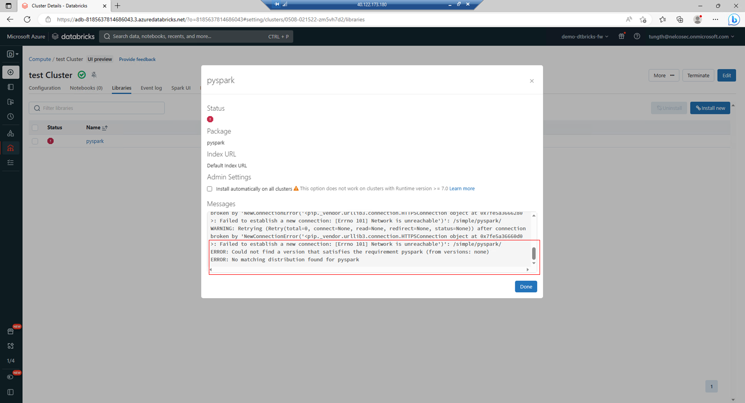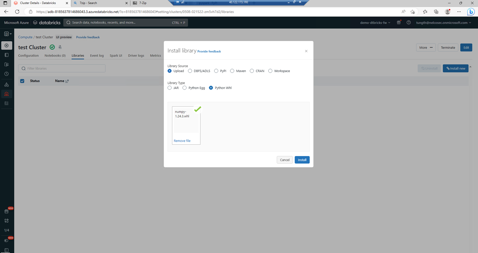 インターネットアウトバウンドを禁止したので、Client PCからインストールファイルをアップロードして、Python packageをインストールします。