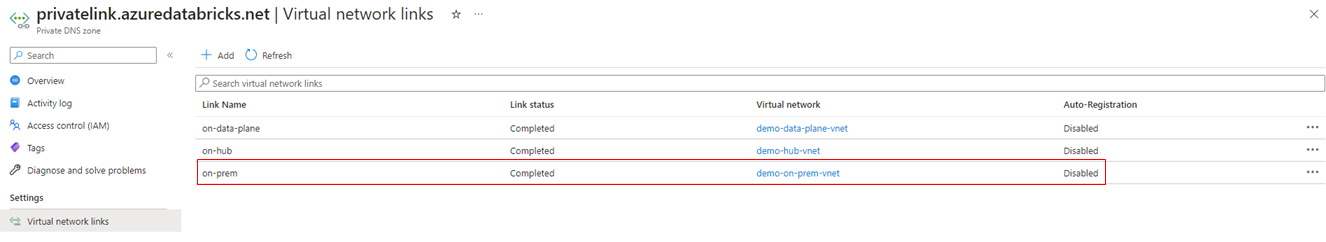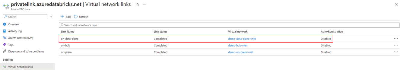 データプレーンからプライベートリンクが使用できるように、データプレーンVnetにDNSゾーンをリンクします。