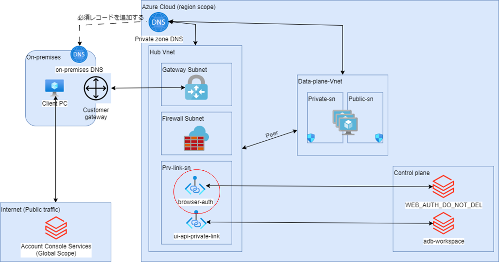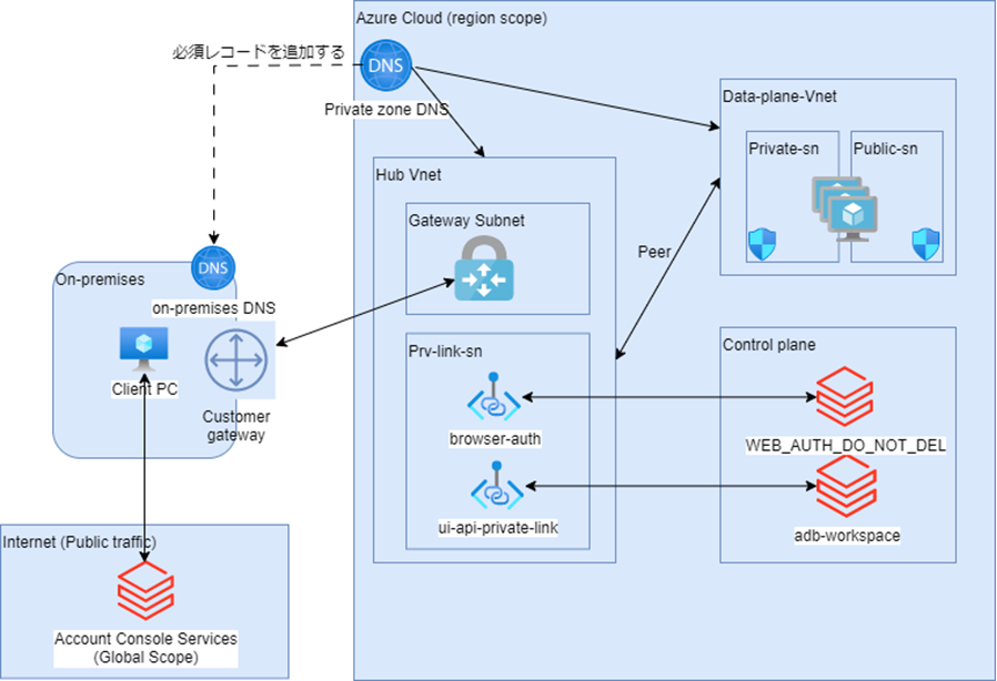 ※・ブラウザー認証プライベート エンドポイントはDatabricksのリージョン毎で共有される仕様で、プライベートエンドポイントをホストするワークスペースが削除された場合に依存する他のワークスペースのWeb認証が中断されてしまうため