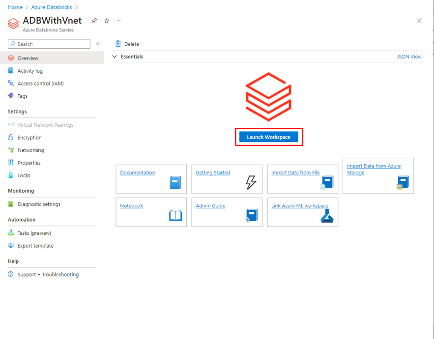 ②「Lauch Workspace」をクリックして Databricks ワークスペースを起動します。