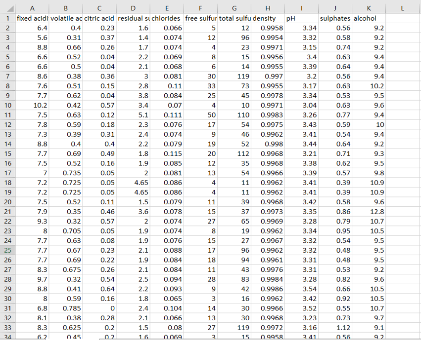 - ワインの成分に関する全ての情報(全ての残りのフィールド)をトレーニング プロセスに使用します。