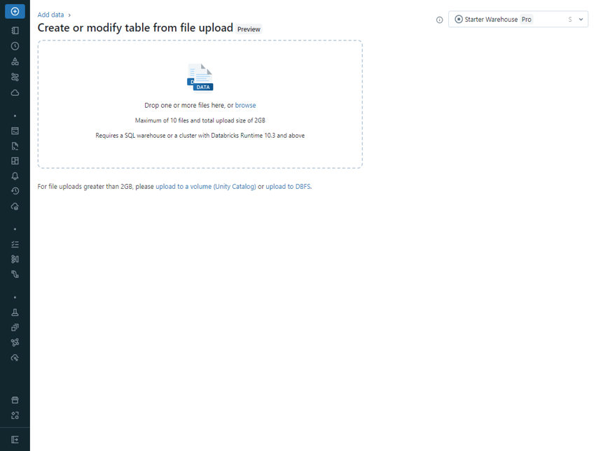 - データを含む CSV ファイルを Unity カタログにアップロードします。
