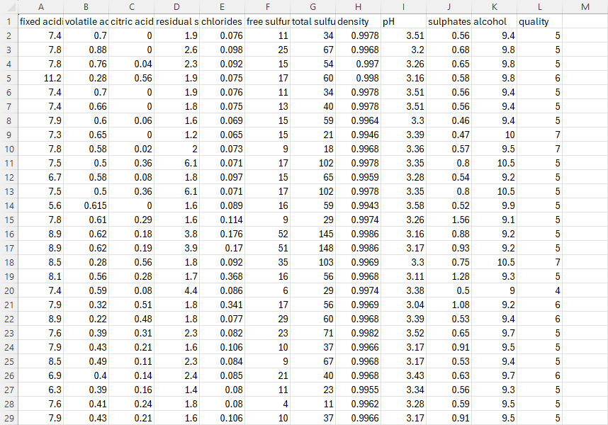 - 今回のデモでは、winequality-red データセットを使用して、ワインの品質を予測します。