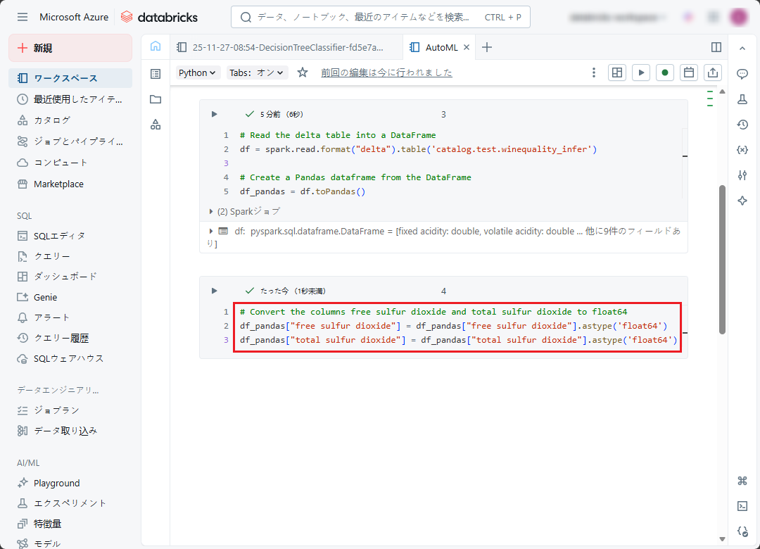 今回は、Databricks AutoMLの使用方法について説明していきます。