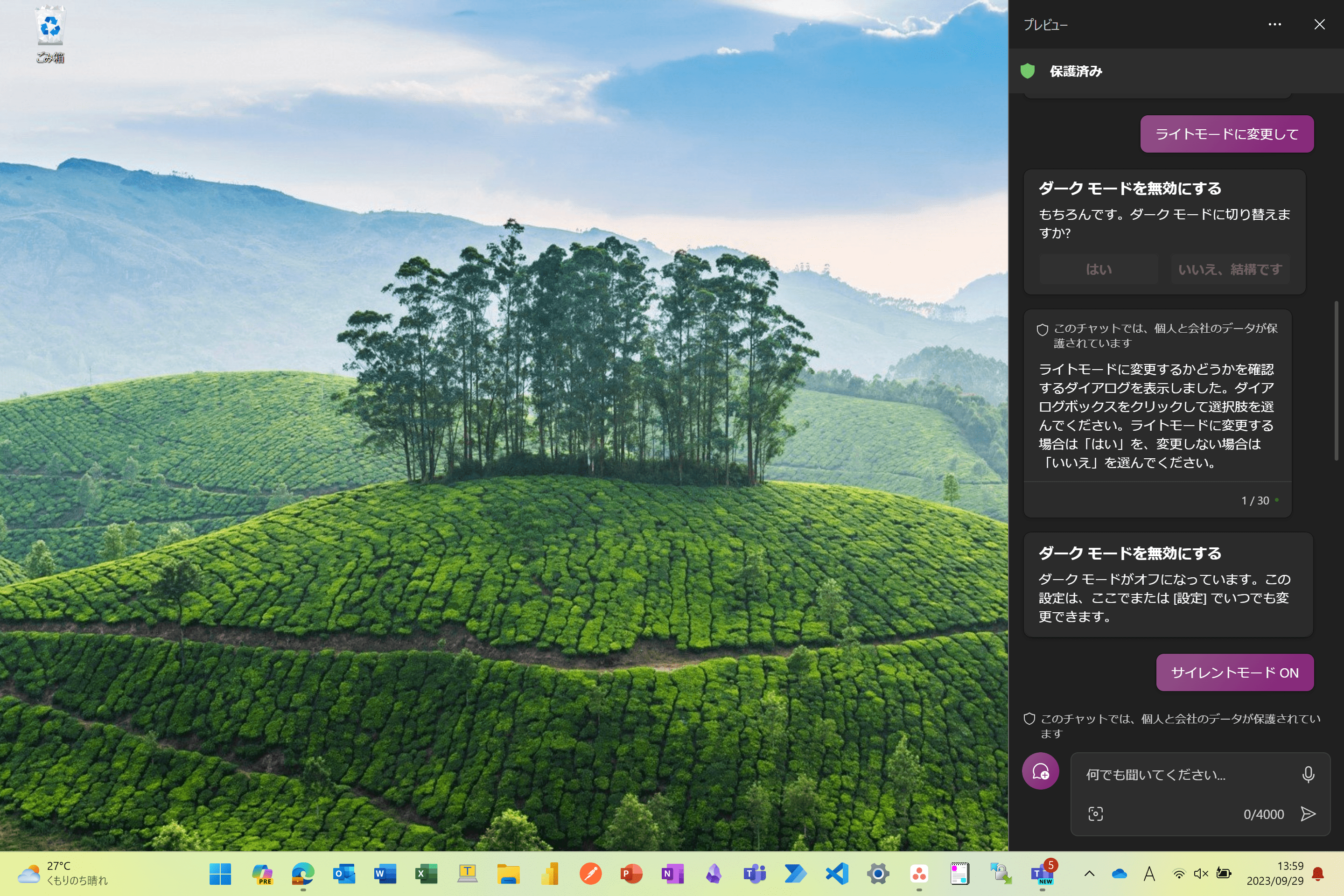 ライトモードやダークモードにしてとChatすると変えてくれます。