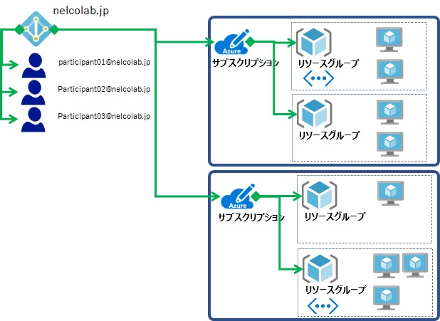 Azure AD・サブスクリプション・リソースグループをまとめると以下のようになる。
